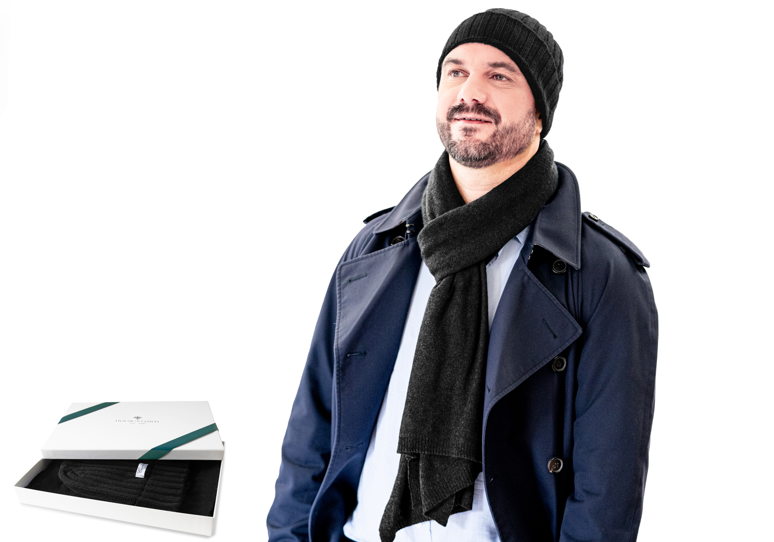 • Soft and cosy with an ageless appeal. CASHMERE BEANIE HAT: The simple style is finished with a knitted rib structure to ensure a close fit. This